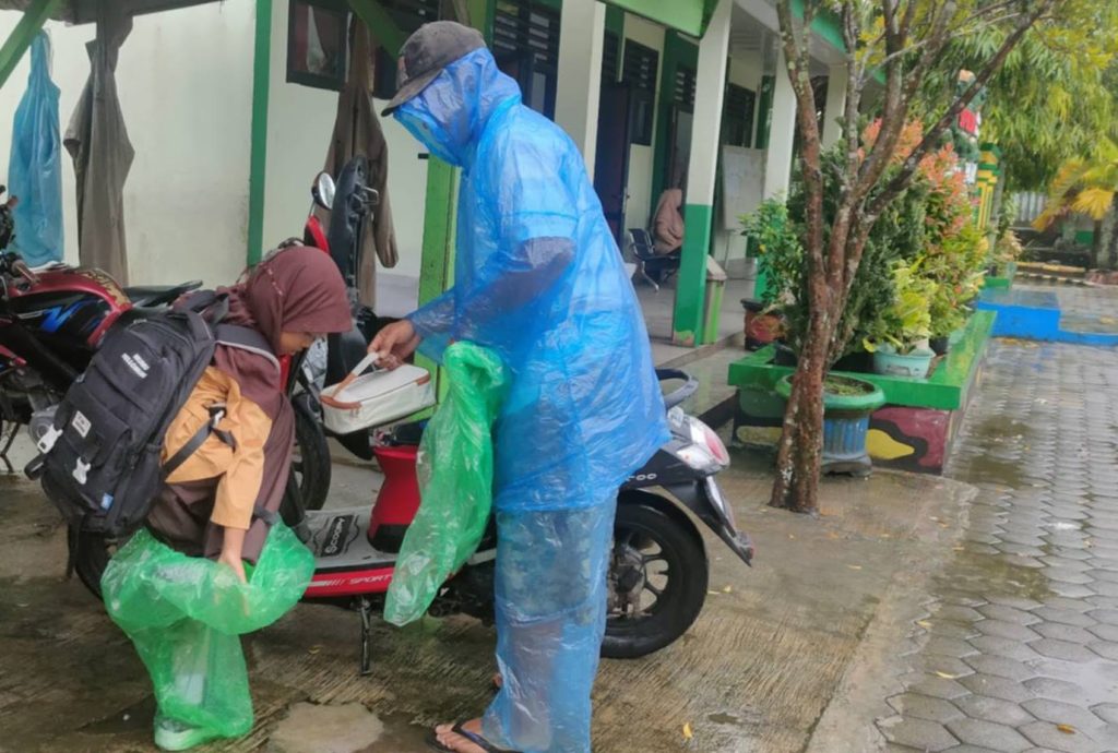 Semangat Dibalik Hujan Kegiatan Belajar Mengajar MIN 4 OKU Timur Tetap Berjalan Aktif